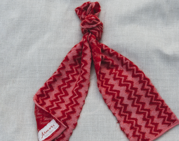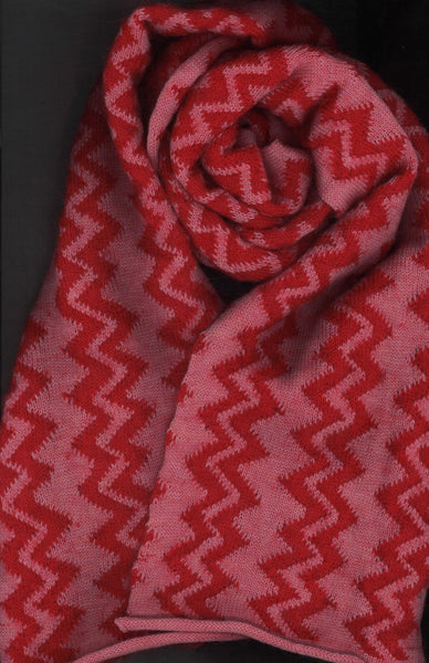 Natalia Scarf, knitted in rosso mohair and pink cashwool. The Natalia scarf is hand loomed on a 5gg domestic knitting machine at our studio in Gloucestershire.