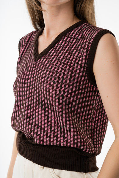 Settle Tank in Chocolate and Rose, knitted in cashwool and Italian silk.